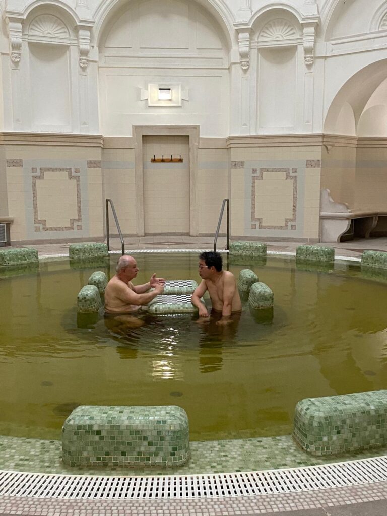 The day began at Anna Thermal Bath in Szeged, where a local elder in the 38°C pool spoke passionately about Japanese wooden architecture and conductors Seiji Ozawa and Ken-Ichiro Kobayashi.